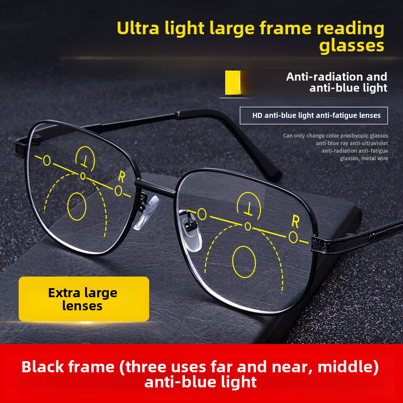 Dual Usage Lens:This high-end pair of glasses features a dual usage lens, allowing for both near and far distance viewing, providing versatility and convenience. High Definition Lens:The glasses boast a high-definition lens that offers superior clarity and vision, making them ideal for daily commute and fashion use. Blue Light Blocking:Designed with a blue light blocking feature, these glasses protect your eyes from harmful blue light emissions, reducing eye strain and improving comfort during prolonged use. Non-Spherical Lens:The non -spherical lens of these glasses provides a unique viewing experience, enhancing depth perception and improving spatial awareness. Fashionable Design:With their stylish and modern design, these glasses are perfect for any occasion, whether it's a casual day out or a formal event. Wholesale Availability:These glasses are available for wholesale, making them an ideal choice for retailers looking to expand their inventory or for individuals seeking a bulk purchase for personal use.