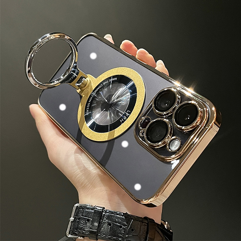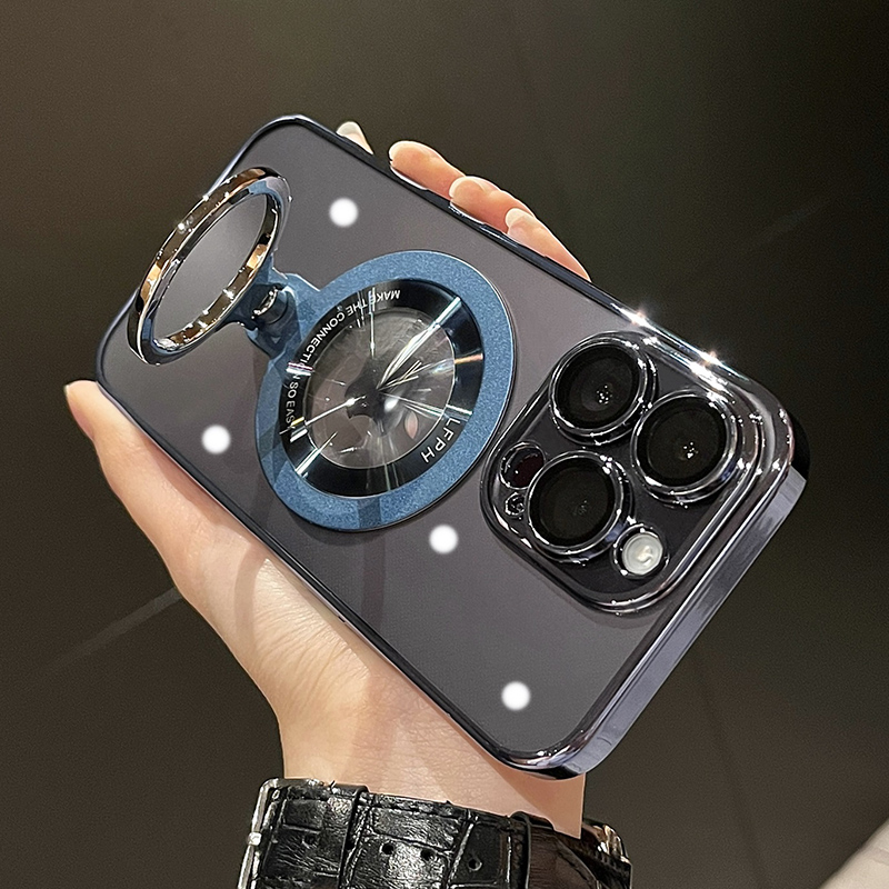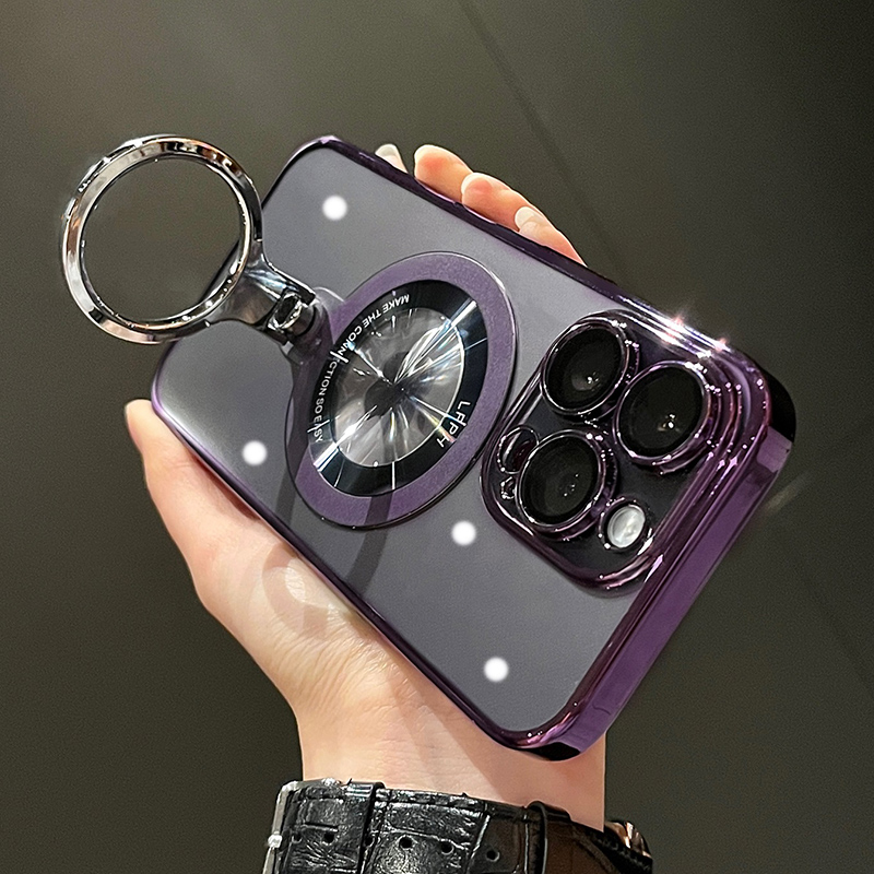Plating Transparent Ring Bracket Stand Magnetic Case For iPhone 15 Pro Max 14 13 12 11 For Magsafe Wireless Charging Hard Cover