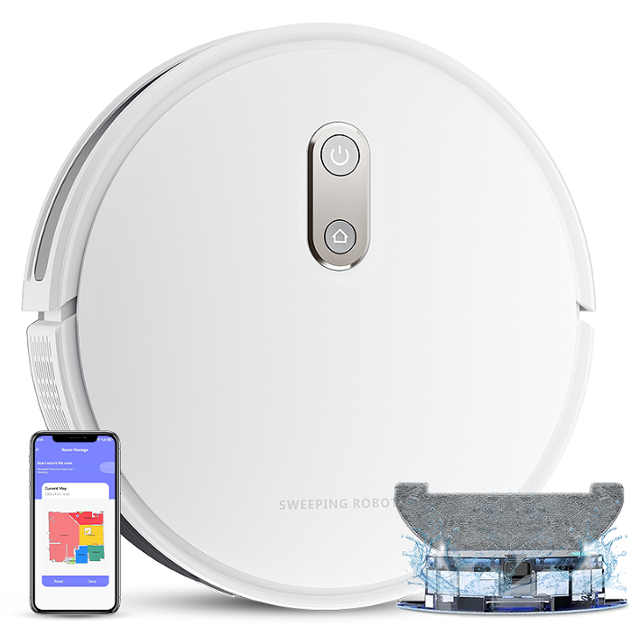 3in1, vacuum, sweep and mop, independent middle roller brush, efficient dust removal. The sweeping robot has a powerful 3000Pa vacuum suction and mopping function, which can quickly and effectively remove dust, paper scraps and other debris. At the same time, equipped with reusable mops, they can easily capture hair and dust, effectively attaching them to the mops and preventing them from falling off again.