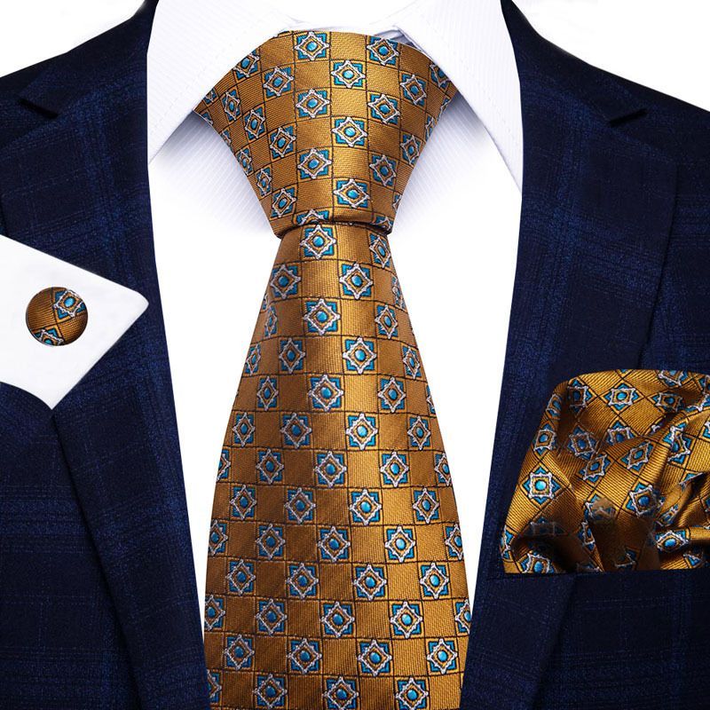 Unisex Hochwertige Polyesterseide Herren Business Formale Einfarbige Krawatte Tasche Handtuch Manschettenknopf Set Jacquard