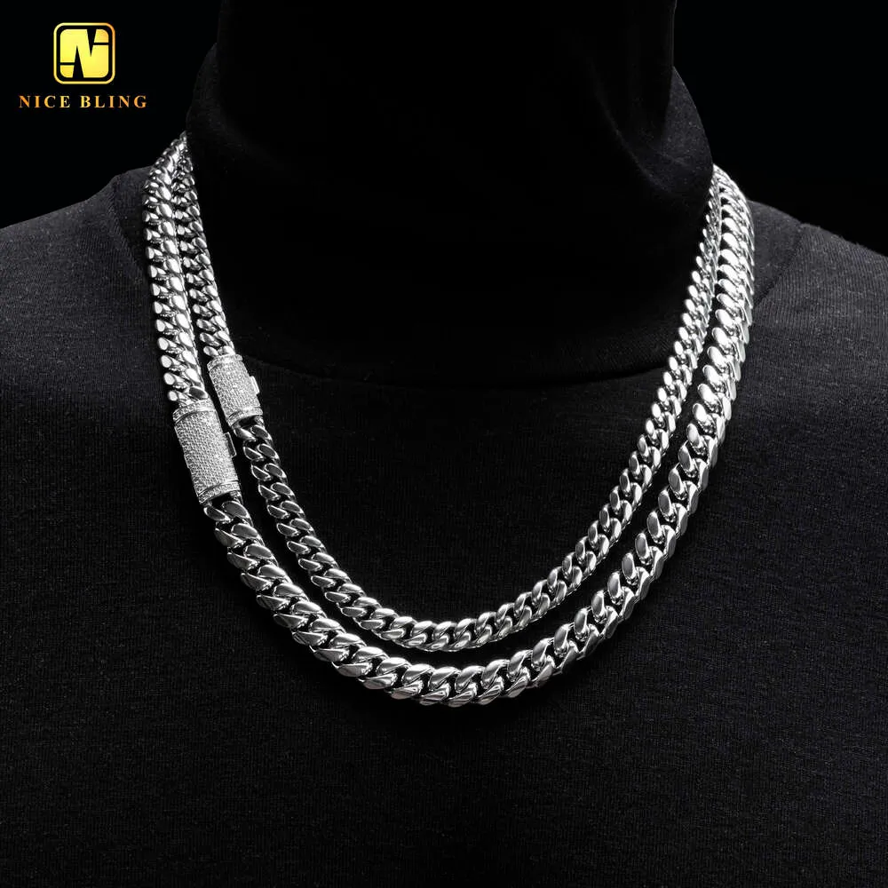 Hip Hop Iced Out Moissanite Dia Clasp 8mm 10mm 12mm 14mm Stainless Steel Pvd Gold Plated Cuban Link Chain