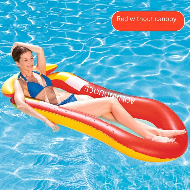 Inflatable Pool Lounge With Canopy Reclining Backrest Foldable Floating Bed With Storage Net Multi-Position Sun Shade_voghion.com