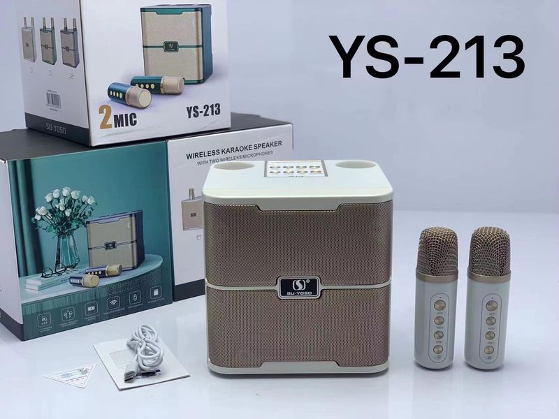 New portable Bluetooth speaker YS213 with variable sound and multiple mobile phone connections, dual wireless microphones
