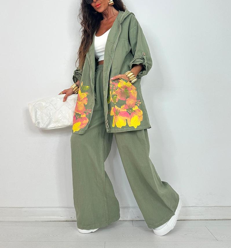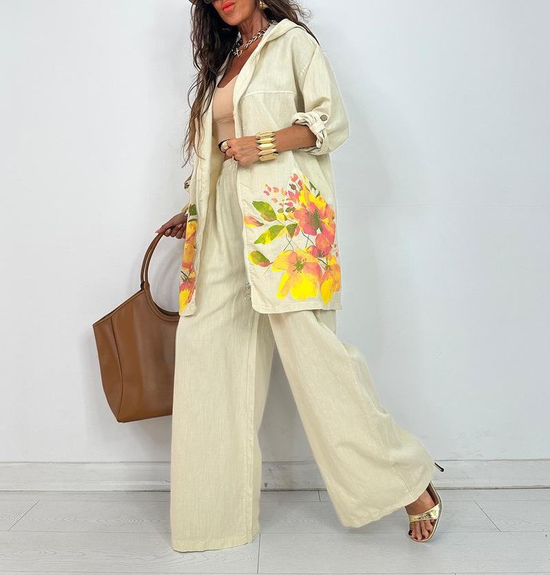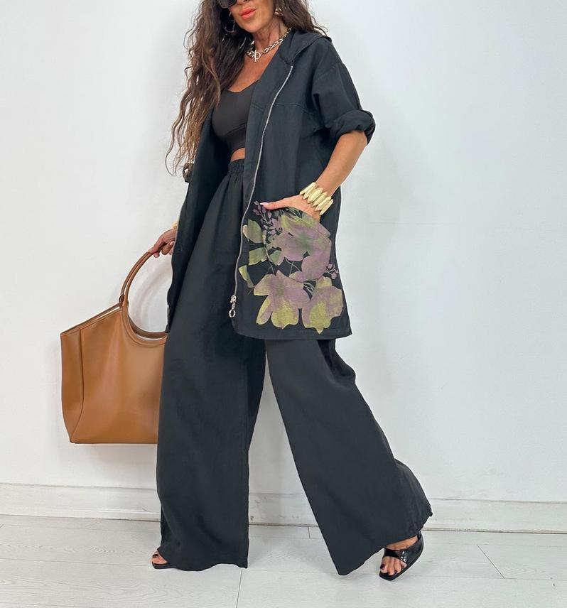 A stylish long-sleeve pants set that blends elegance with everyday comfort.