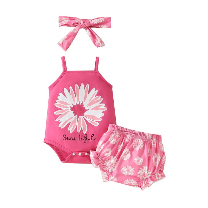 Anne ve Çocuk 2024 Yaz Yeni Stil Askılı Üçgen Tulum Papatya Harf Baskılı Külot Kafa Bandı Seti Bebekler ve Yürümeye Başlayan Çocuklar İçin