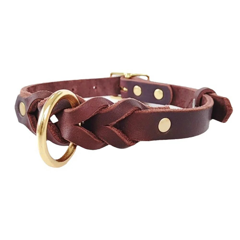 Hochwertiges, echtes, geflochtenes Halsband, verstellbar, weiches, echtes Leder, Trainingshalsband für Haustiere mit rostfreien Metallbeschlägen