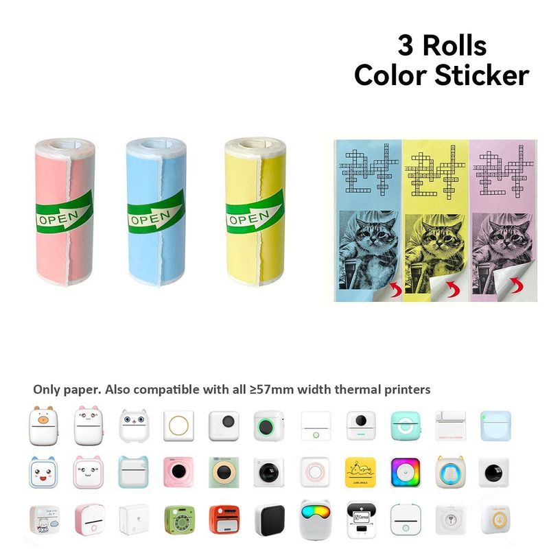 [No Printer] 3 Rolls - Color Stickers - Printing Paper