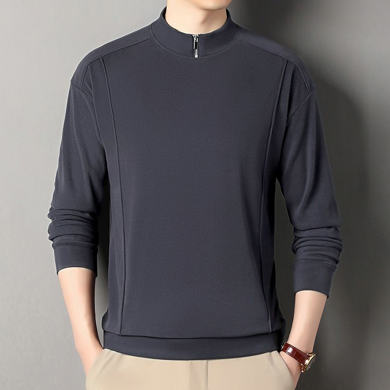 Thick double-sided velvet long sleeved sweatshirt for men in autumn and winter, with a semi high collar and zipper, simple and casual bottom shirt, T-shirt for men