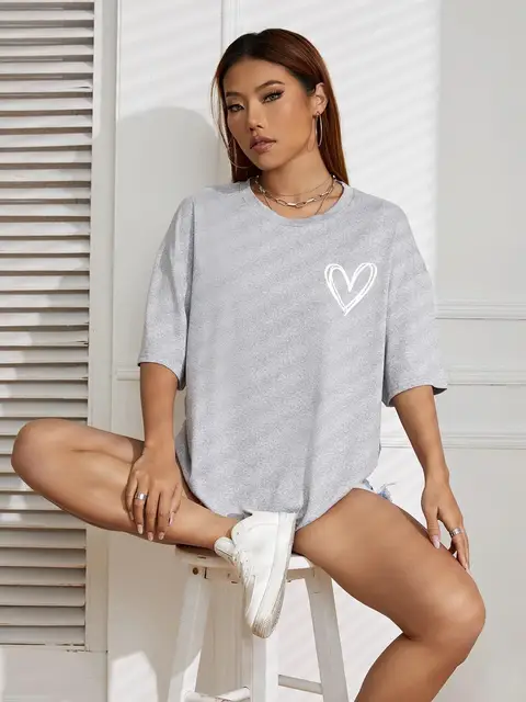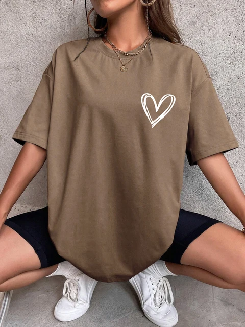 hot selling Simple Love Printed Womens Tsh Summer Breathable Clothes Casual Fashion Short Sleeve Street Oversized All Match_voghion.com