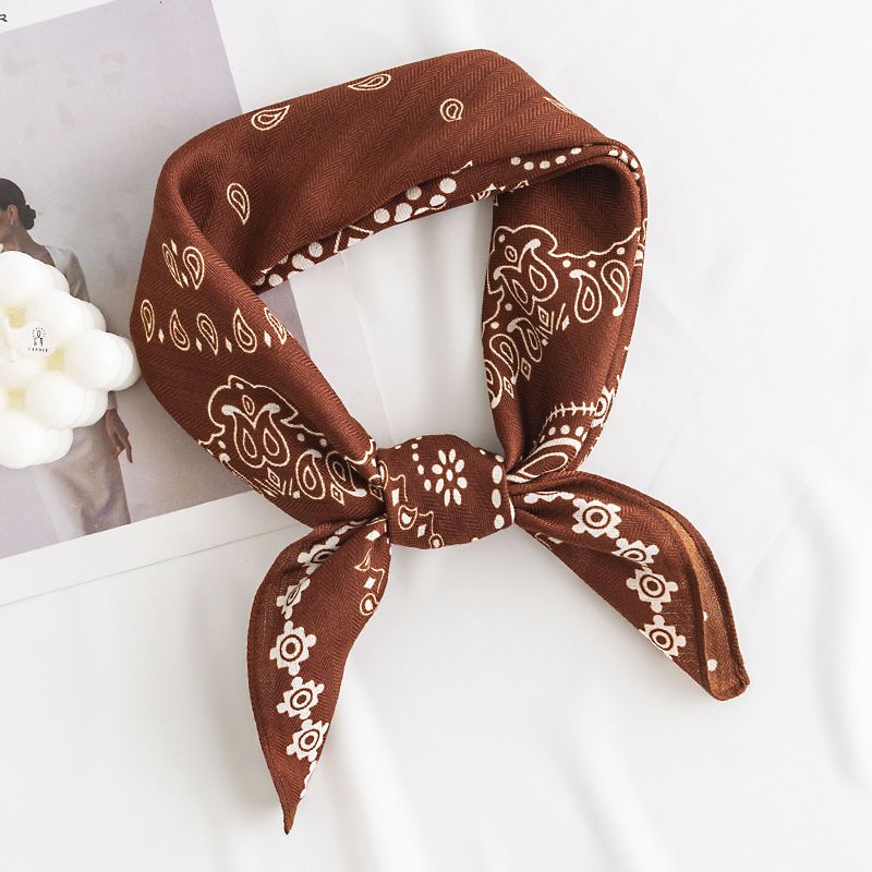 Literary and artistic Korean version of minimalist temperament small square scarf with printed pattern simulation silk scarf elegant professional dress scarf for women