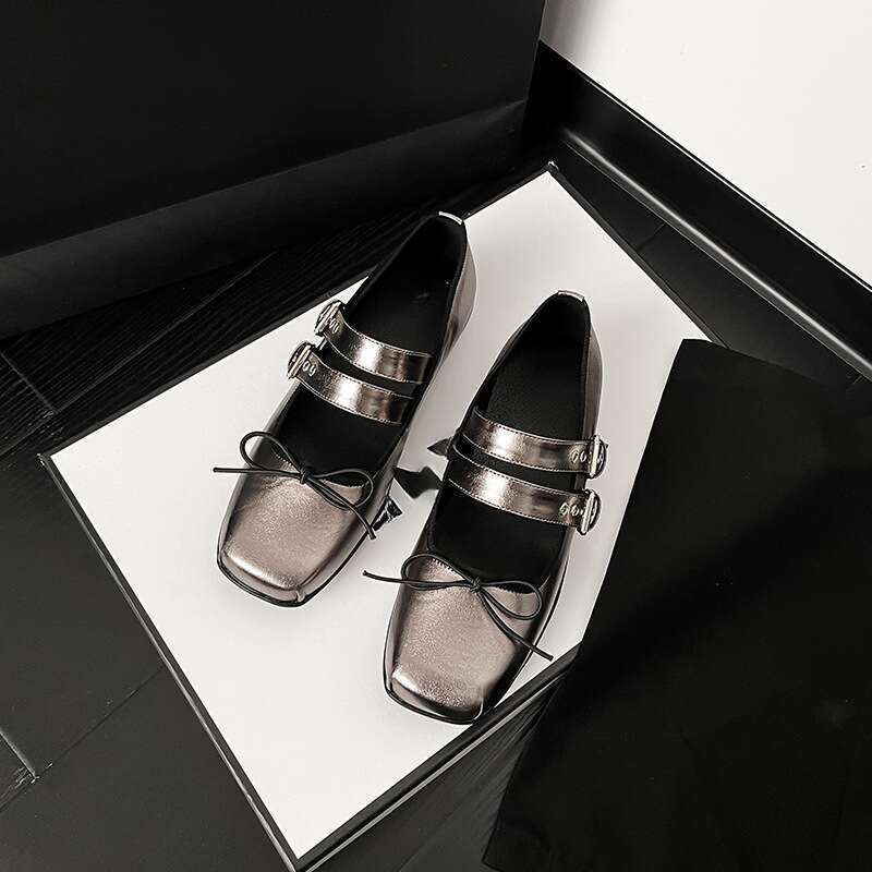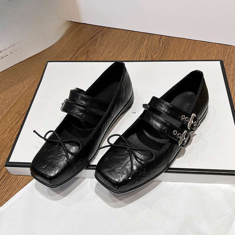 2024 Early Spring New Flat Bottom Shallow Mouth Bow Single Shoes, Small and Small, Broken and Worn out Ballet, Mary Jane Shoes, Female
