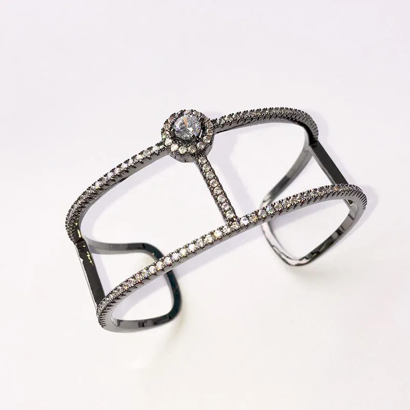 Bangle Personalized Punk Generous Line Wide Cut Out Zircon Bracelet