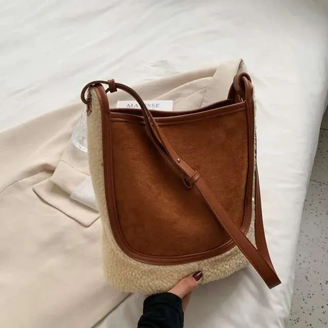 Big Large Capacity Crossbody Women's 2023 New Autumn And Winter Lamb Wool Tote Plush One-Shoulder Bucket Bag_voghion.com