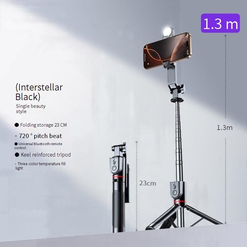 Ditch bulky equipment! This 3-in-1 stabilizer combines a selfie stick, tripod and fill light in one sleek package that extends to 1.7M for cinematic shots.