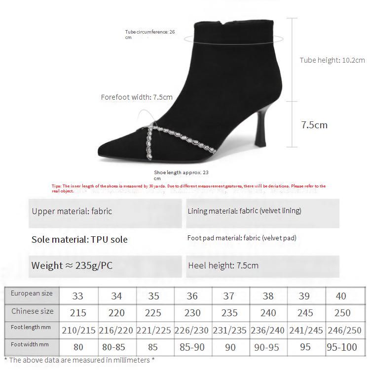 Cameido Women's Fashion Pointed Toe Suede Heel Short Boots With Rhinestones For Autumn And Winter