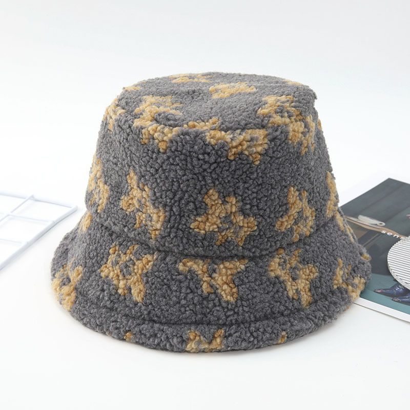 Lamb fur teddy bear hat women, versatile for autumn and win, round face suitable plush hat, cute fisherman braves