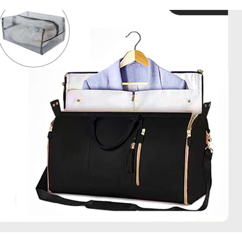 Guangzhou PU Leather Handheld Men's and Women's Folding Suit Bag Multi functional Travel Luggage Bag
