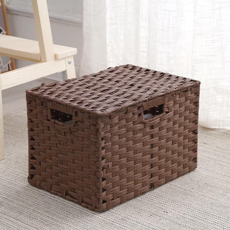 Lidded Rattan Woven Storage Basket Multi-Functional Organizer with Handle for Home Bedroom Miscellaneous Storage Box