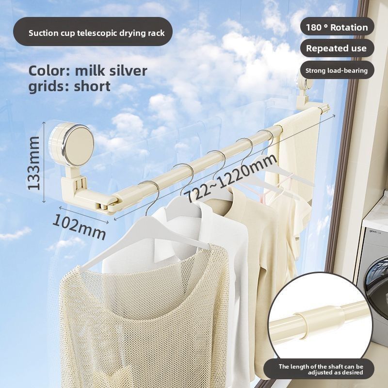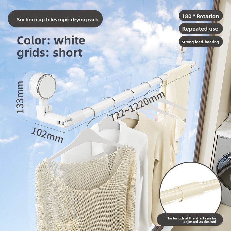 Suction Cup Clothes Hanger Wall-Mounted No-Drill Household No-Trace Drying Artifact Balcony Space Utilization Retractable Clothes Rod