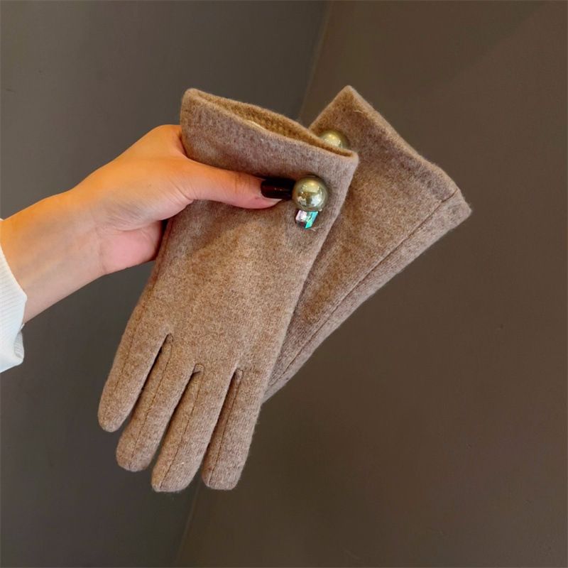 Wool camellia flower gloves, pearl flash diamond accessories can touch the screen, cashmere gloves are simple, windproof and cold-proof.