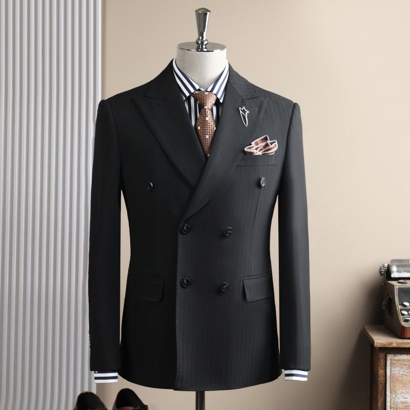 Product Source Category:In Stock,Item Number:8063,Bargain Category:Fashionable Urban 24-35 Years Old,Front placket:Double-row Two-Button,Error margin:1-3cm.,Suitable for the season:Spring and Autumn Season,Is it in stock?:yes,Inventory Type:Complete order,Fabric Name:Synthetic Blend Fabric,Main fabric composition:Polyester fiber,Content of the main fabric components:67,Applicable Scenarios:Everyday,Collar Style:Peak Lapel,Slit Design:Side Slit,Design:Form-fitting,Thickness:Thick,Year/Season of Release:Autumn 2025,Design details:Metal Decoration,Color:Black Suit + Trousers, Sugar Coffee Suit + Trousers, Navy Blue Suit + Trousers, Medium Gray Suit + Trousers, Black Suit + Vest + Trousers, Sugar Coffee Suit + Vest + Trousers, Navy Blue Suit + Vest + Trousers, Medium Gray Suit + Vest + Trousers, Black Single Suit, Sugar Coffee Single Suit, Navy Blue Single Suit, Medium Gray Single Suit,Size:48/M/29 50-56kg ,50/L/31 56-62.5kg ,52/XL/32 62.5-67.5kg ,54/2XL/33 67.5-72.5kg ,56/3XL/34 72.5-79kg ,58/4XL/36 79-87.5kg ,60/5XL/38 87.5-100kg,Main downstream platforms:, , , , Independent Station, ,Main sales regions:Europe, North America, Northeast Asia,We have authorized private labels available:No,Is it exclusively for cross-border export supply?:yes,Style:Light Business,Appraisal Agency:000,Clothing Craftsmanship:Adhesive Lining Technology,Original Design Source:yes,Is there a quality inspection report?:No,Quality Inspection Report Number:000,Material function:Anti-wrinkle,Receive the Label:No Collar Label,What is the source type?:Direct Source Factory,Hang Tag:With tags