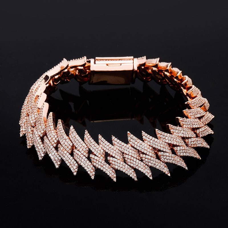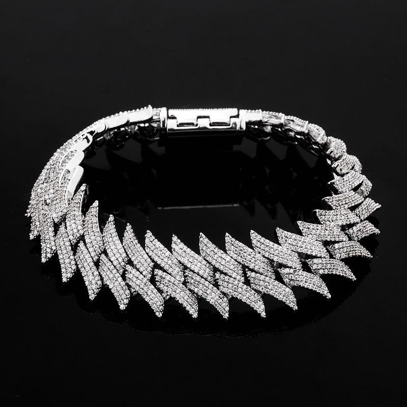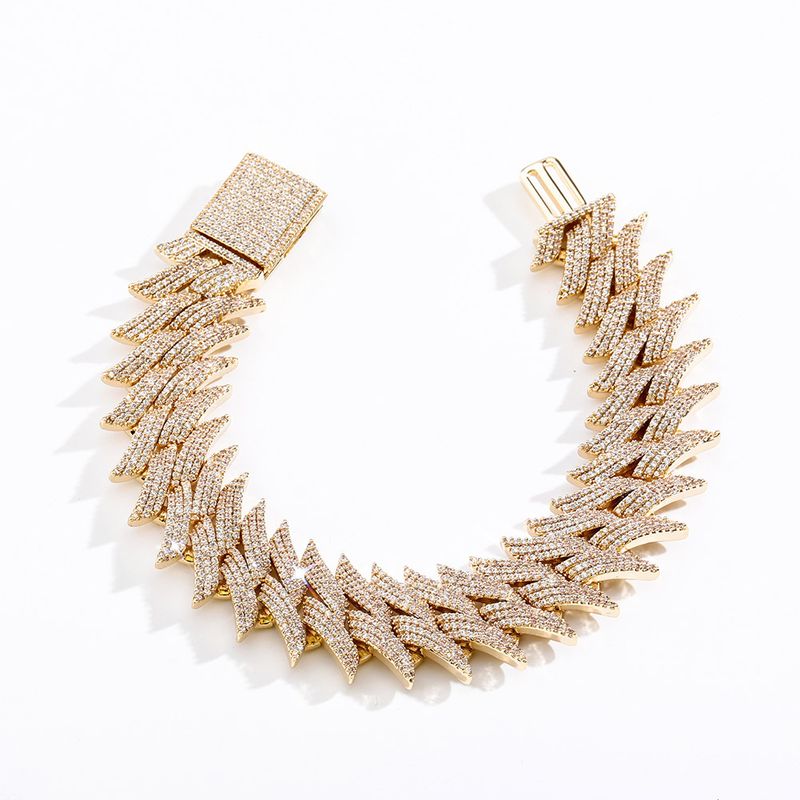 20mm Thorn Box Buckle Cuban Chain Full Of Zircon Hip Hop Men's Trendy Bracelet Real Gold Electroplating