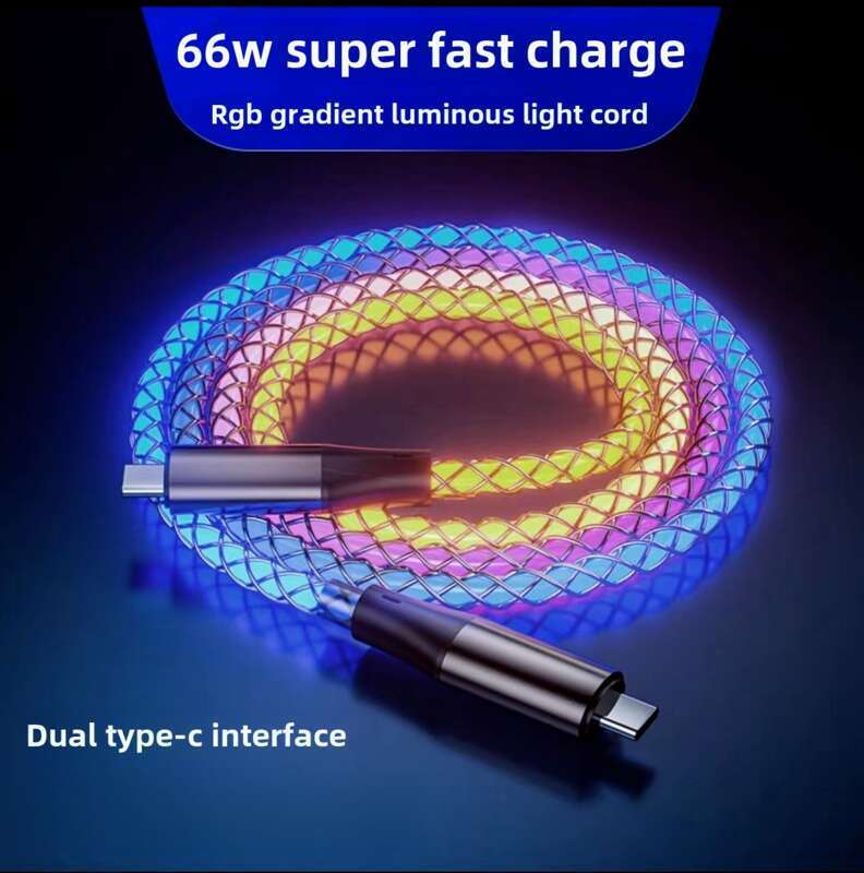 6A Supersnelle PD Kleurrijke Luminescente Datakabel Type C Naar Oplaaddraad Drie In Een Machine Voertuig RGB