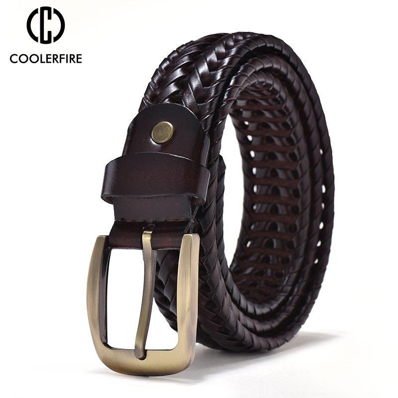 HOT Genuine Leather Braided Webbing High Quality Hand Vintage Belts Men Gold Pin Buckle Casual for Jeans Strap HQ212