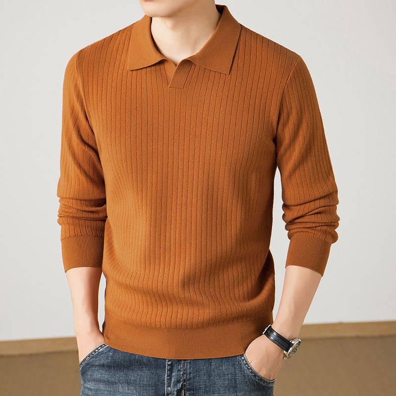 Men’s Seagull Collar Knit Sweater – Lightweight Long-Sleeve Pullover With Embroidered Badge (Light Gray, Black, Army Green, Coffee)