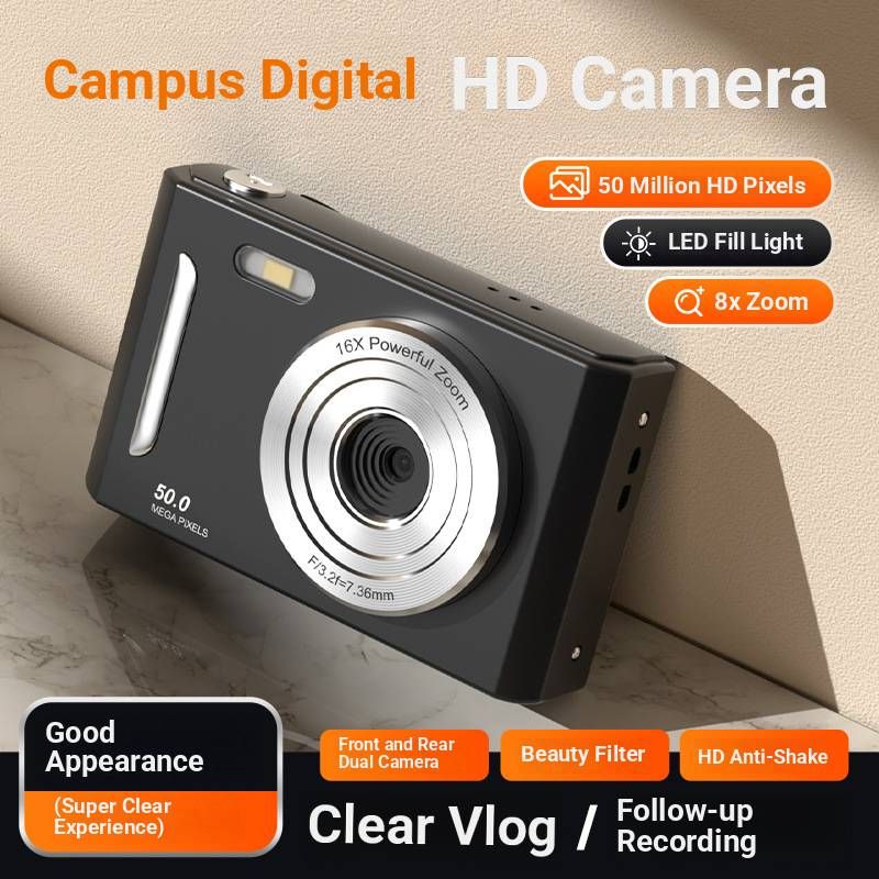 720p HD Video – Record campus vlogs with nostalgic grain effects