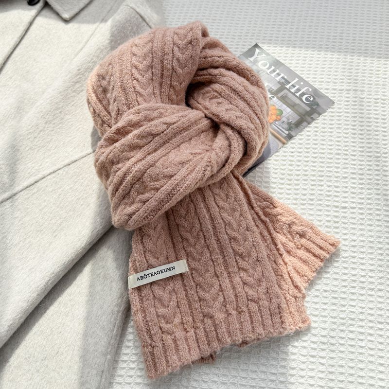 Wool Blend Women, Autumn And Winter Korean Style, High-End Atmosphere, Warm Knitted Versatile Solid Color Cable Scarf