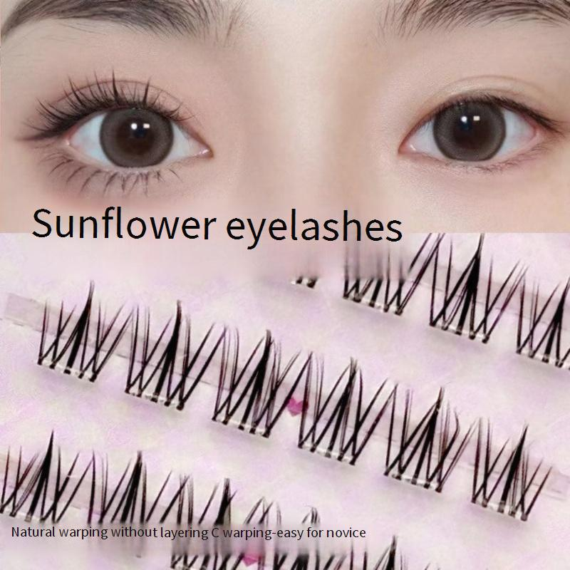 Beauty Health Glue Free And Removable Sunflower False Eyelashes Segmented Self Adhesive Eyelashes Double Pointed Sunflower Stem Free Glue