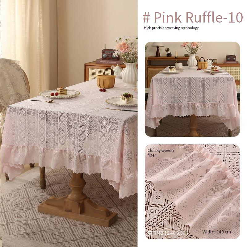 Frans vintage kanten tafelkleed - Verdikt rechthoekig eettafelkleed met elegante ruche rand