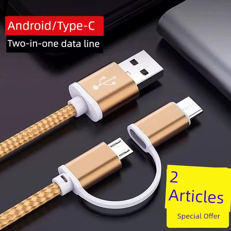 Two-in-One Data Cable Dual-Use One-to-Two Fast Charging Cable for Huawei Vivo Xiaomi Meizu Android Neutral Long