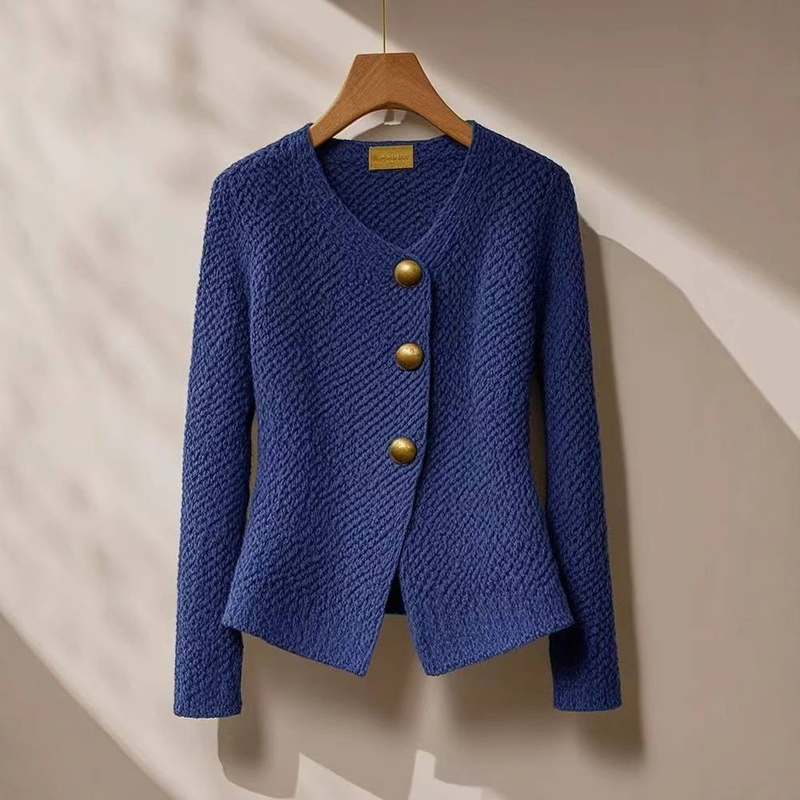 Women's Clothing Unique And Beautiful Early Autumn Outfit, Casual And Versatile, Cool And High End Blue Knitted Cardigan Jacket