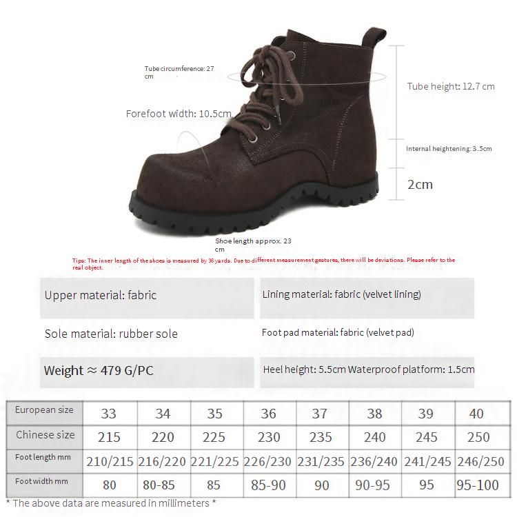 Cameido Women's Retro Suede Lace - Up Martin Boots Low - Cut Thick - Soled Elevator Shoes For Autumn And Winter