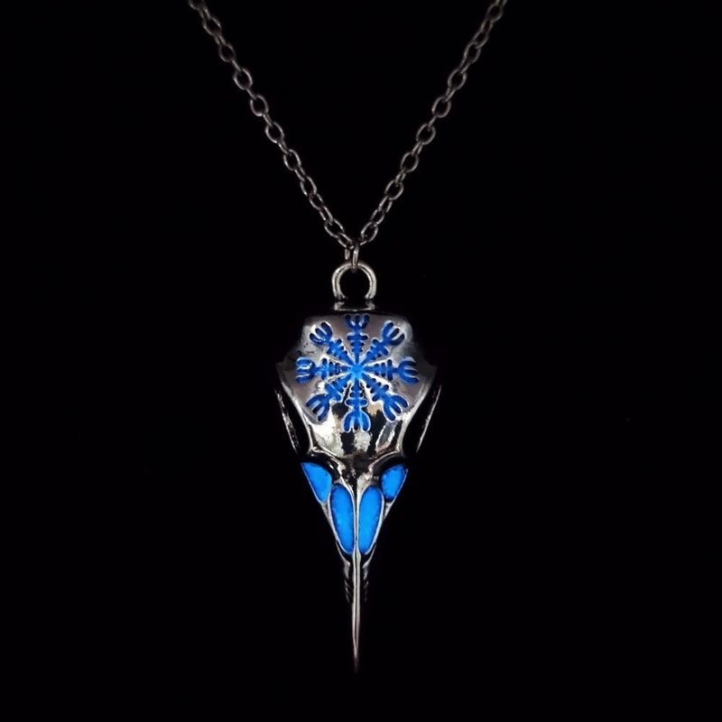 Luminous Vintage Crow Skull Pendant Keychains For Men Glow In The Dark Bird Sweater Chain Glowing Necklace Punk Trendy Jewelry