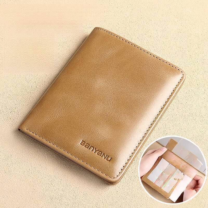 Genuine Leather Wallet Men's Vertical Ultra-thin Head Layer Cowhide Simple Short Version_voghion.com