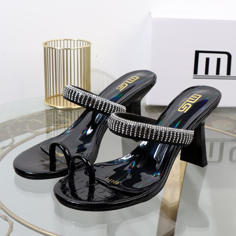 Internet celebrity one word slipper 2024 summer toe fitting square high heel external wearing sandals, oversized women's