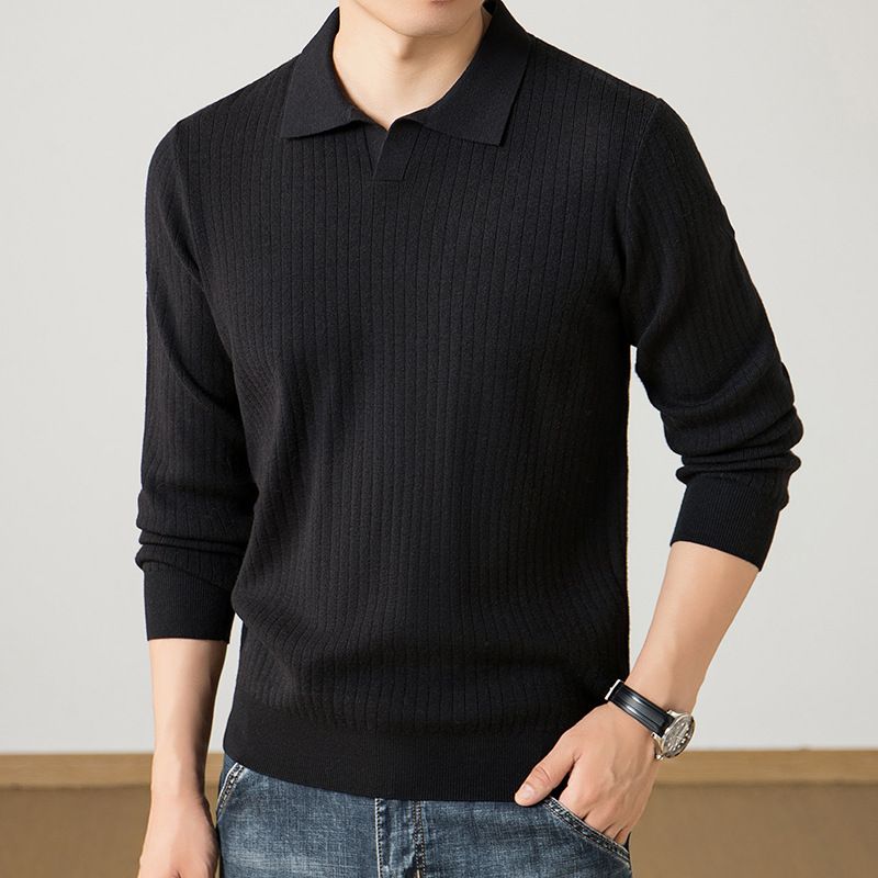 Men’s Seagull Collar Knit Sweater – Lightweight Long-Sleeve Pullover With Embroidered Badge (Light Gray, Black, Army Green, Coffee)