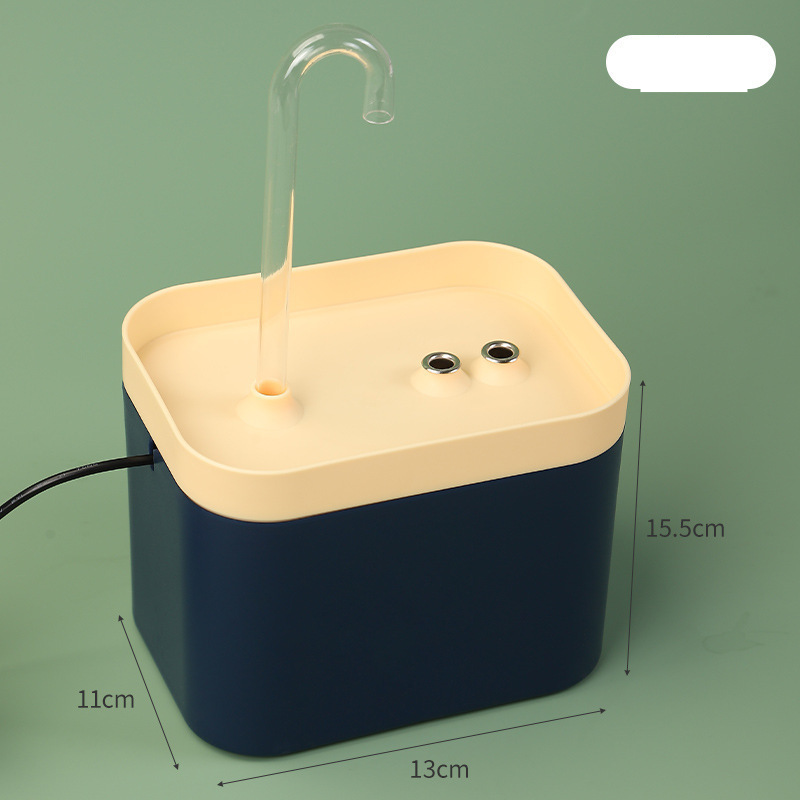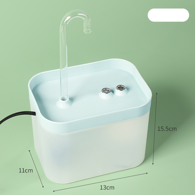 [Name]: Crystal curved pipe water dispenser [Article number]: 34723 [Material]: Copolymer PP [Specifications]: Length 17*Width 12.7*Height 14cm, suitable for small dogs and cats [Weight]: About 400 grams [Note]: Customized colors start from 1,000 sets, bosses who need it can contact 15168352821 [Interface specifications]: Direct plug-in interface (default domestic 220V flat-pin plug, US 110V interface, European 230V round head interface), other plugs can be customized, with a minimum order quantity! USB interface (self-provided power adapter required)