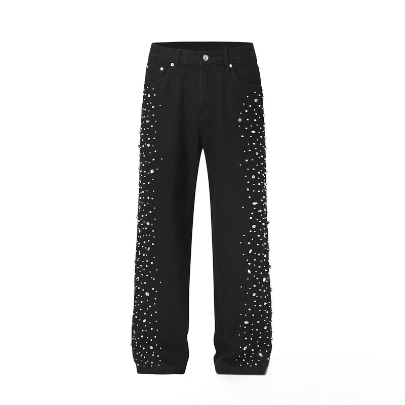 Cross Border Wholesale Laser Diamond Denim Shorts Men's Washed Distressed Jeans Retro Loose Straight Pants Lazy Style