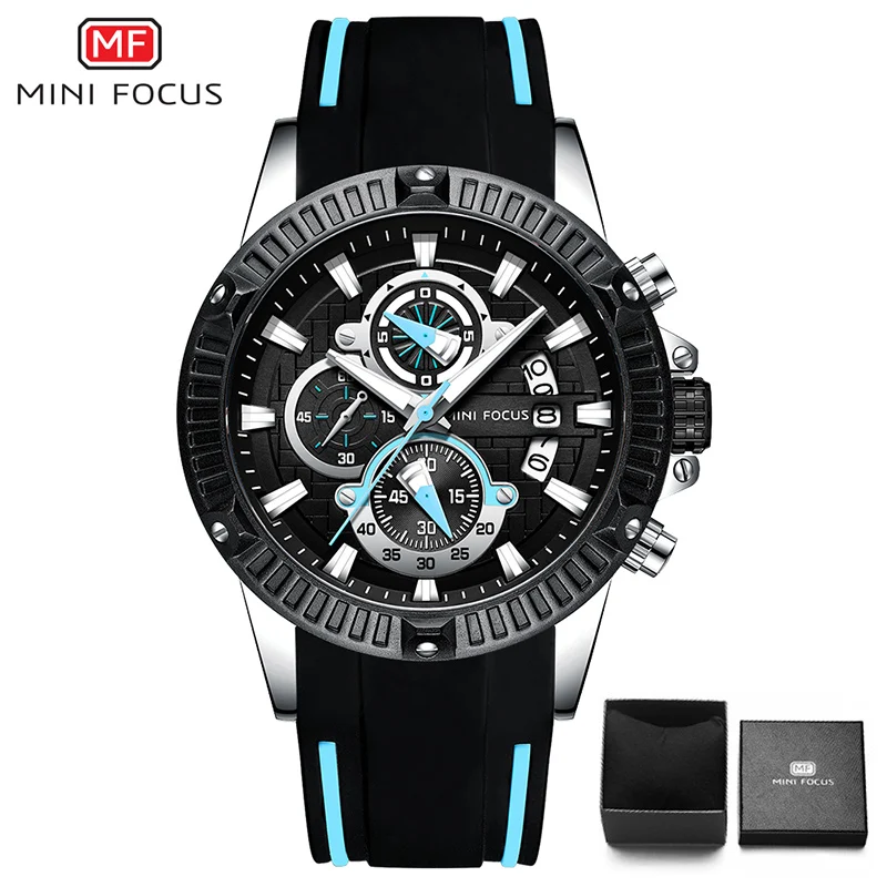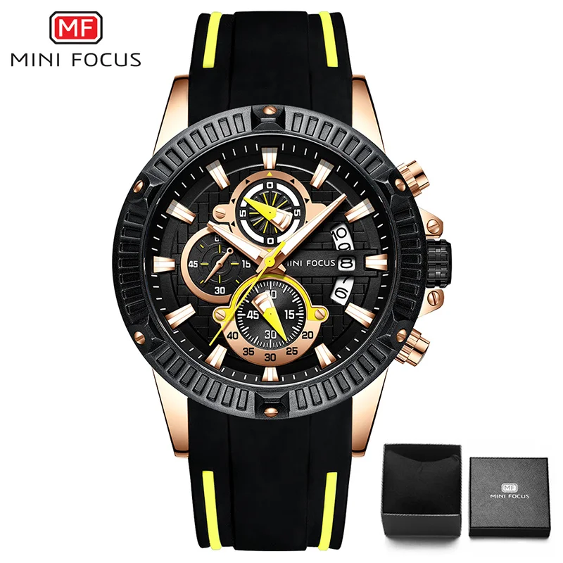 Case Thickness:13.7mmBand Width:24mmBand Material Type:SiliconeCase Shape:RoundDial Window Material Type:HardlexBoxes & Cases Material:PaperModel Number:MF0244GDial Diameter:47mmFeature:Chronograph,Complete Calendar,Water Resistant,luminous handsWater Resistance Depth:3BarClasp Type:BuckleBand Length:24cmCase Material:ALLOYMovement:QuartzStyle:SPORTBrand Name:MINIFOCUSOrigin:Mainland ChinaCertification:CE,FCC,RoHSItem Type:Quartz Wristwatches
