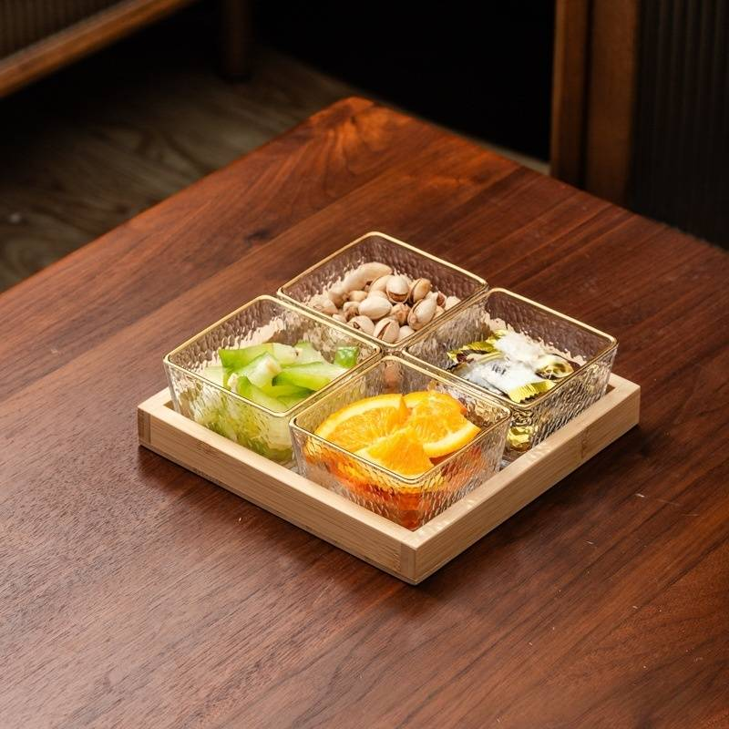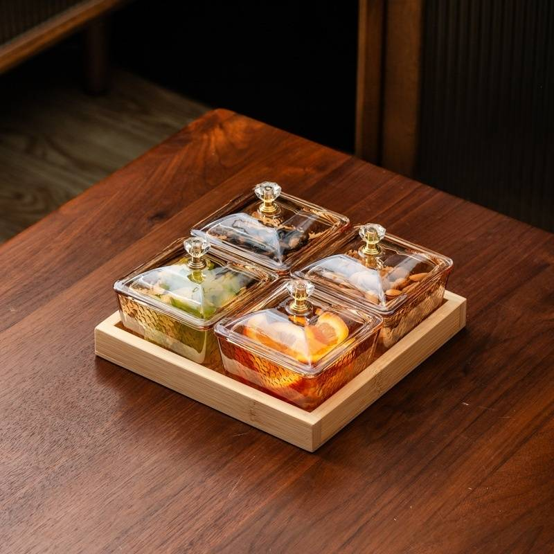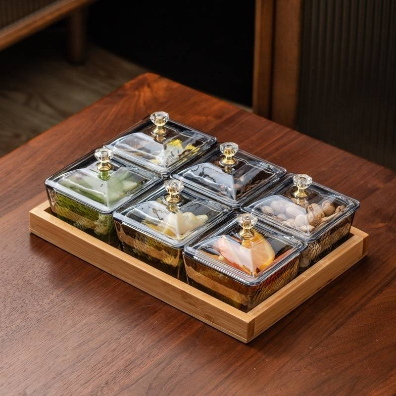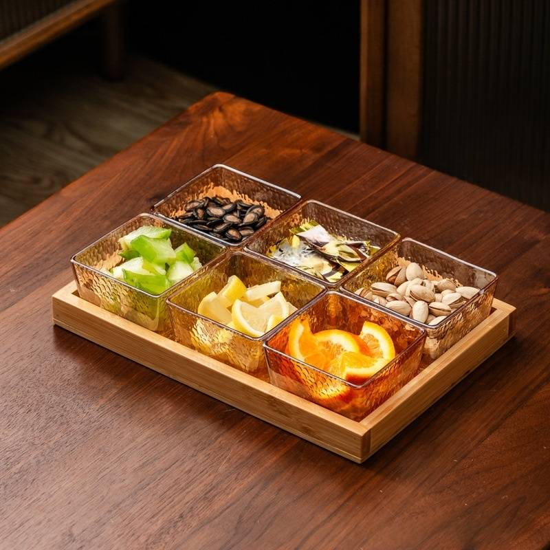 Premium Acrylic 6-Compartment Serving Tray - Party Snack & Candy Display Platter For Ktv & Catering (Sturdy Non-Slip & Dishwasher Safe)
