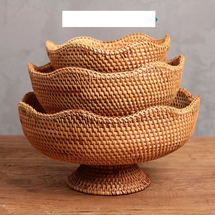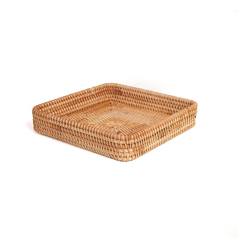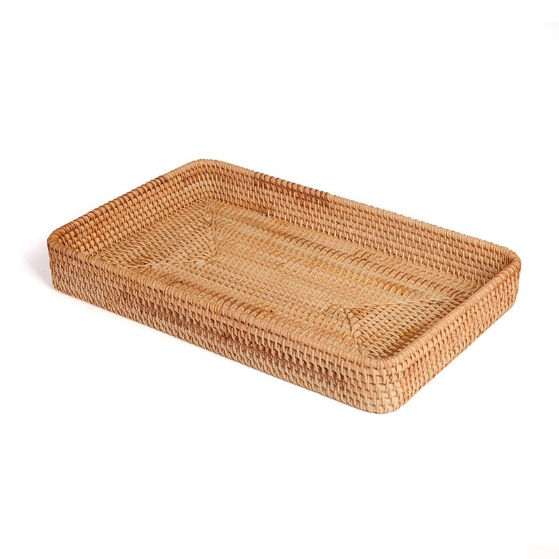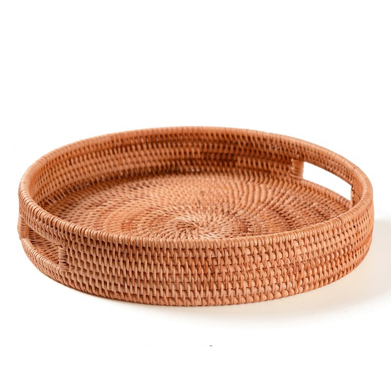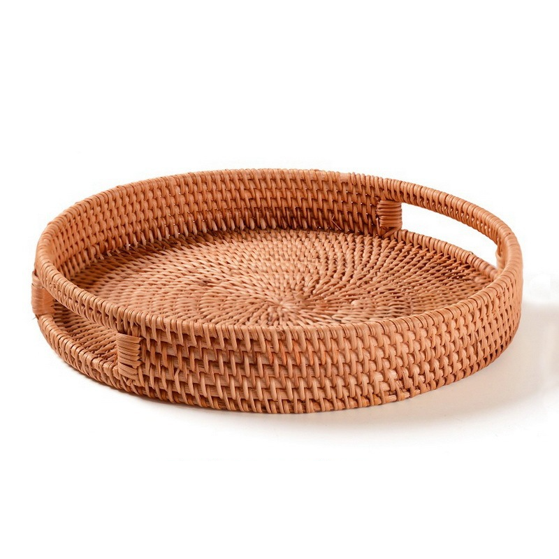 Rattan Tray Set (3-Piece) - Multi-Purpose Fruit & Snack Serving Tray For Tea Cups Candy Nuts - Handwoven Storage Organizer