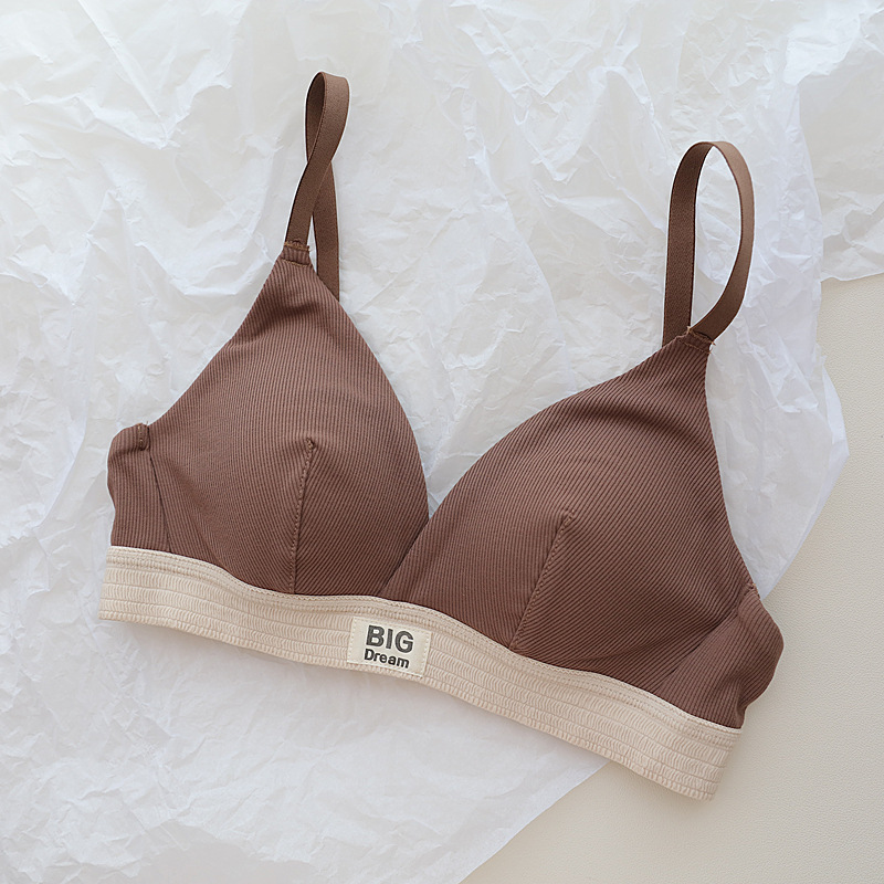 American style threaded sports for women with no steel ring, large and small chest gathering, French triangular cup,