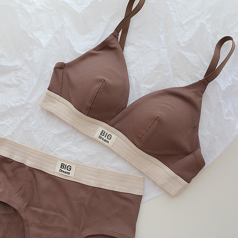 American style threaded sports bra for women with no steel ring, large chest and small chest gathering, French triangular cup, thin bra set