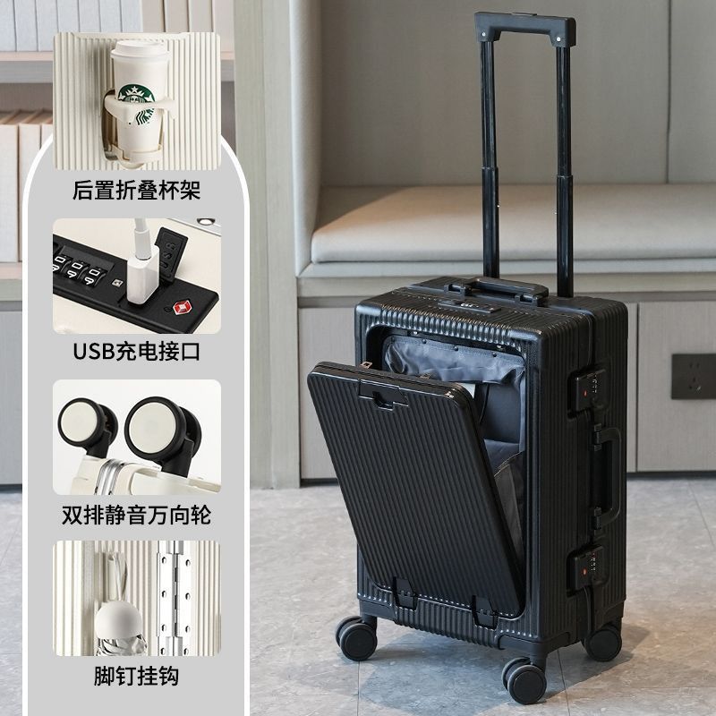 Trolley suitcase with front opening, large capacity, silent caster wheels, strong and durable aluminum frame